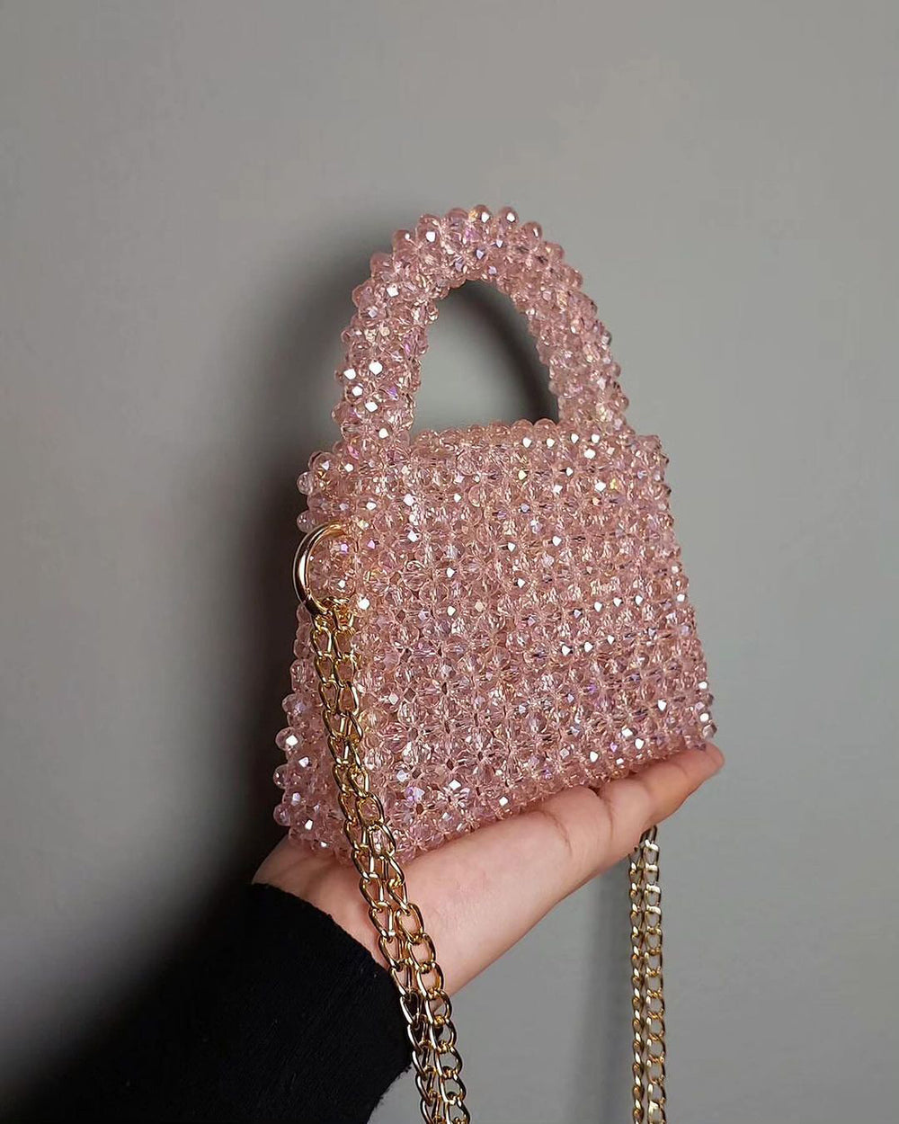 Customization: Contact us via WhatsApp or Instagram to customize your Pink Lips Crystal Bag